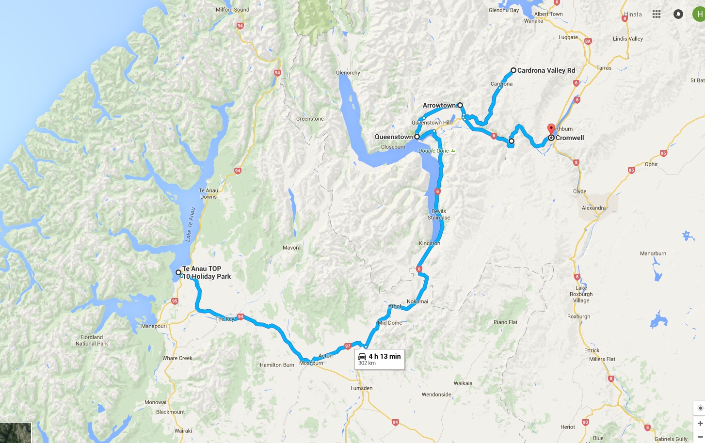Inila laluan kami untuk hari ni. Gagah dan gigih tak drive dari Te Anau sampai ke Cromwell. Dalam map kata 4jam saja tapi sebenarnya kami ambik masa lebih 12jam nak sampai ke Cromwell sebab kami menyinggah ke Queenstown, Tasik Wakatipu, Layan Autumn Festivel di Arrowtown, menyaksikan keindahan di Cardrona Valley dan barula cari penginapan di Cromwell.
